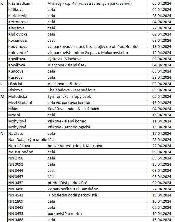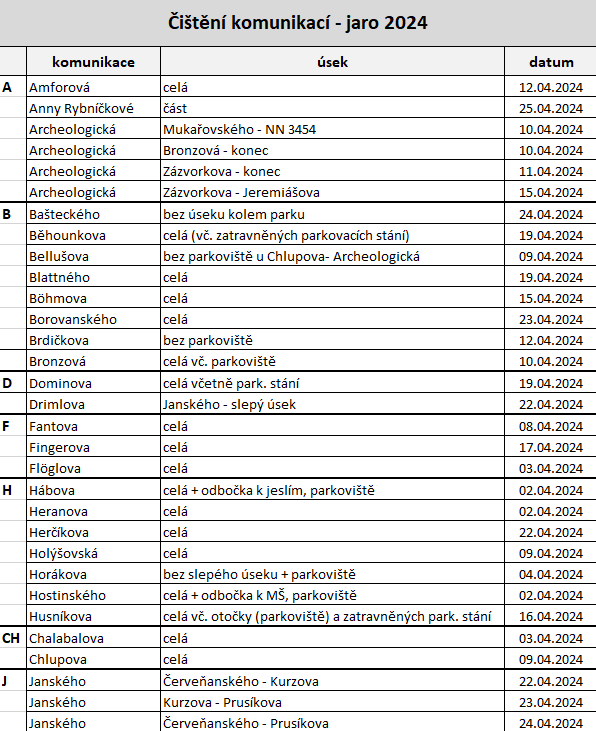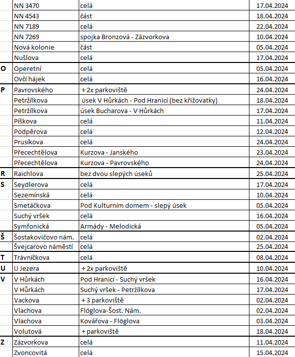 Komplexní údržba komunikací v roce 2024 – jaro (XLSX, náhledy přehledu níže)