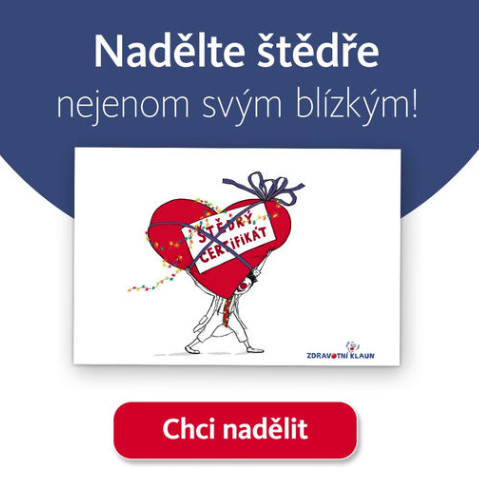 Pozn. red.: Váháte s nějakým dárkem. Nemusíte. Získejte Štědrý certifikát od Zdravotního klauna s vlastním věnováním. Darováním pošlete radost nemocným dětem a jejich rodičům, kteří musí trávit období Vánoc v nemocnicích. A nebo právě seniorům, kterým klauni dělají radost. Po zaplacení si budete moci stáhnout Štědrý certifikát s vaším osobním věnováním. Stačí ho jen vytisknout nebo si ho nechat poslat elektronicky. Certifikát Vám Zdravotní klaun zašle i poštou včetně červené obálky. Na Vás bude už jen darovat ho někomu pod stromeček. Nabídka zaslání poštou platí pouze do 20.12. 2023. |